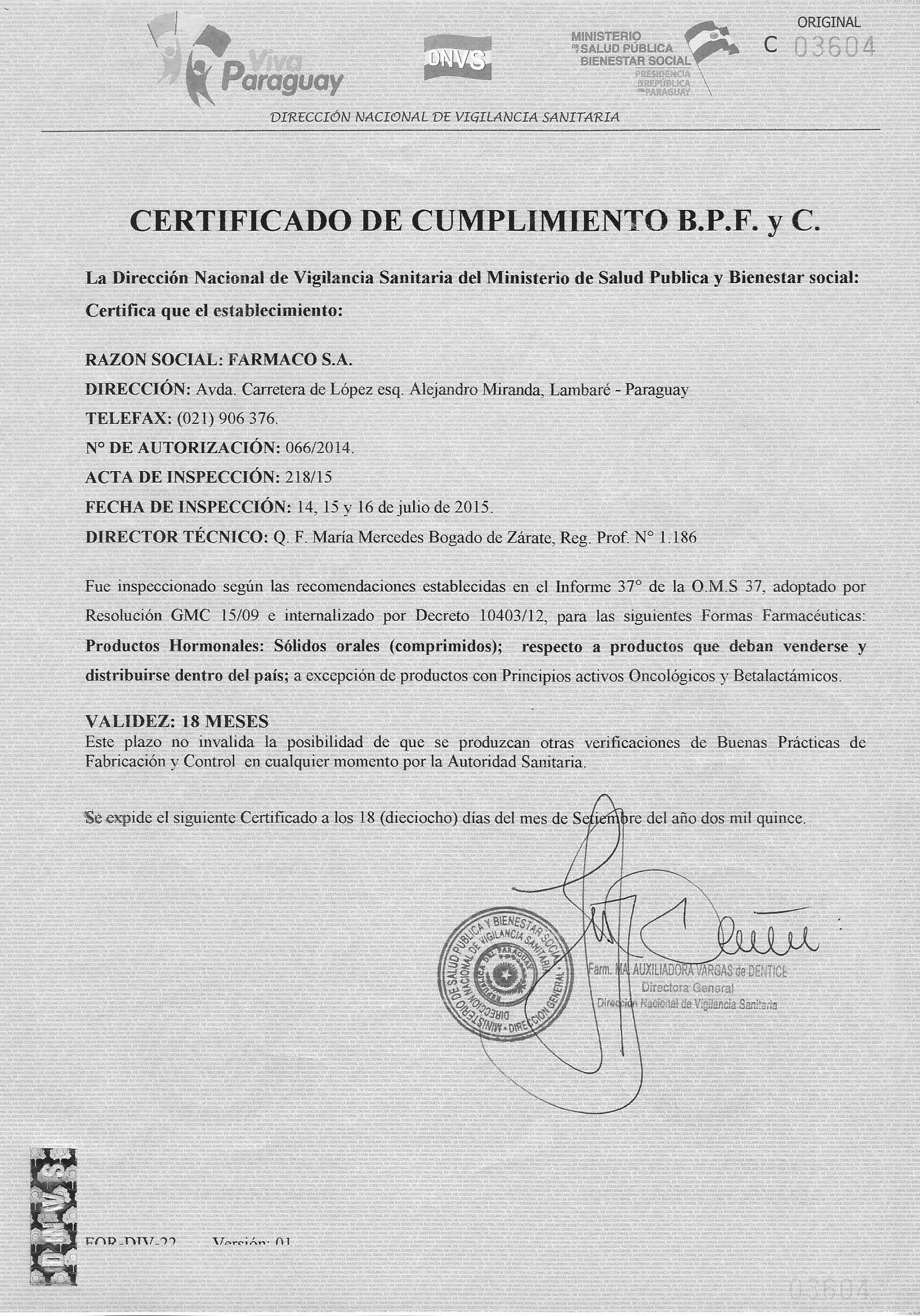 Habilitación de la primera planta hormonal (comprimidos) en el país.